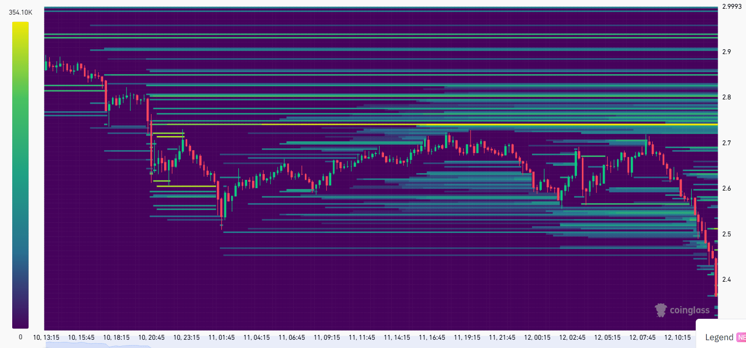 Erwähnenswert ist jedoch, dass die Liquiditäts-Heatmap zeigt, dass sich eine beträchtliche Liquidität knapp über der 2,7-Dollar-Marke aufbaut und sammelt.