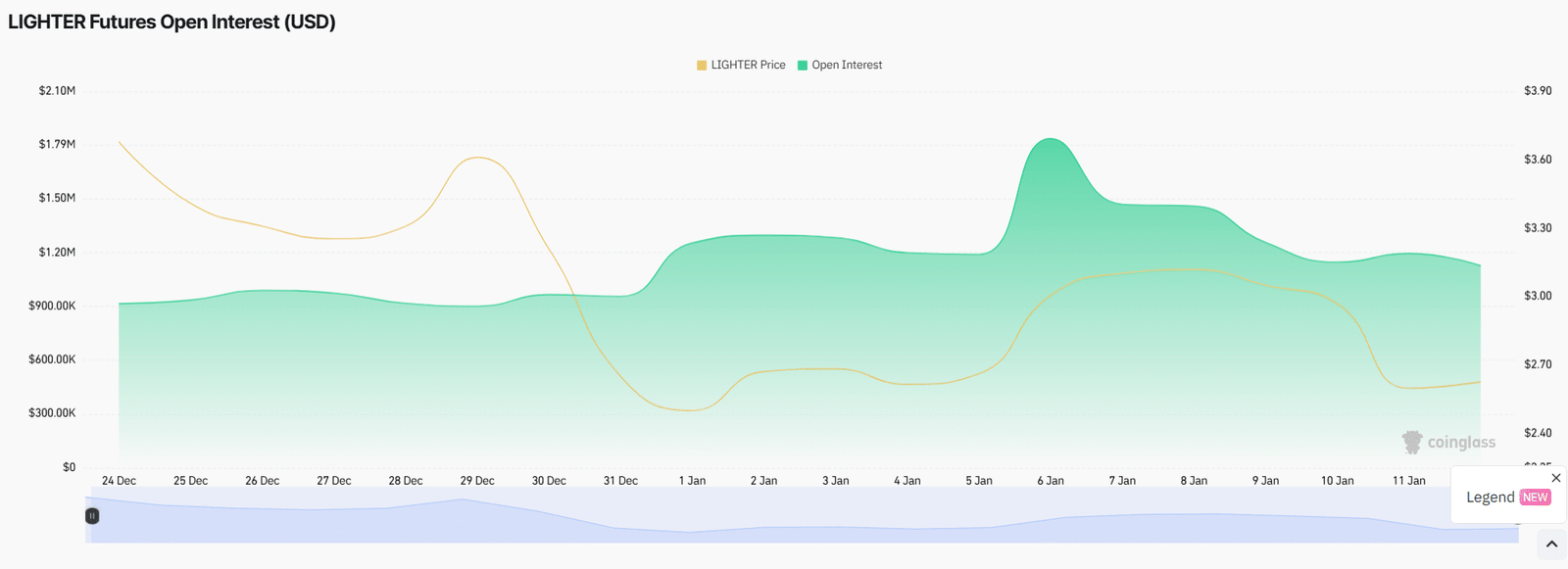Eine weitere Verfolgung von LIT ergab einen Anstieg des offenen Futures-Interesses – ein Zeichen dafür, dass es auch im Jahr 2026 noch eine Marktbeteiligung gibt.