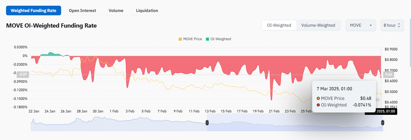 - MOVE erhielt über den Markt einen massiven Dynamik, als offenes Interesse und Marktvolumen stiegen