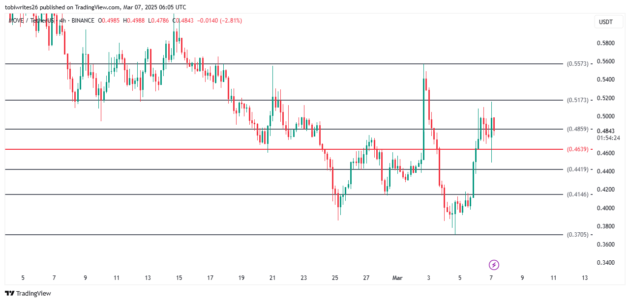 Wenn jedoch das Support Level von 0,4859 USD gilt, BEWEGEN Könnte einen Sprung höher sein, der möglicherweise 0,5573 US -Dollar erreichte. Wenn der bullische Dynamik weitergeht, könnte der Preis noch weiter steigen.