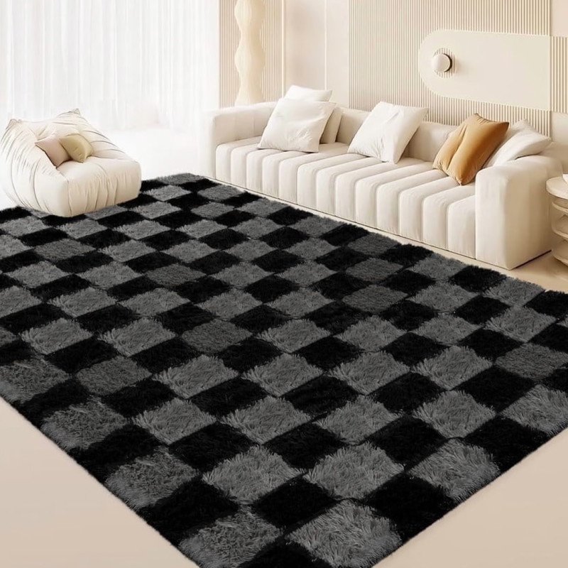 - Farboptionen: Der Teppich ist in vier verschiedenen Karomustern zum gleichen tollen Preis erhältlich: Schwarz und Grau, Schwarz und Weiß, mehrfarbig und Rosa und Weiß.