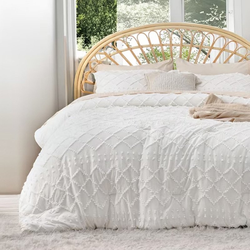 Dieses Bettdeckenset vereint Schönheit und Komfort perfekt. Es wird mit drei Teilen geliefert, darunter einer 90 x 90 Zoll großen Queen-Bettdecke und zwei 20 x 26 Zoll großen Kissenbezügen. Doch statt eines gewöhnlichen Designs ist das Set eher im Boho-Stil gehalten, mit auffälligen gestickten Details, die Ihrem Schlafzimmer genau das richtige Maß an Struktur verleihen.