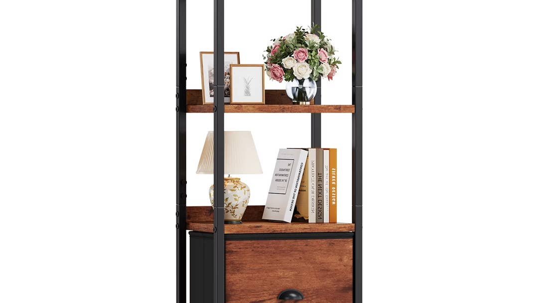 Der Gianna 4-stöckiges Bücherregal Bietet viel offenen und geschlossenen Stauraum für beliebige Gegenstände im Haus. Es eignet sich perfekt für das Familienzimmer, das Schlafzimmer, das Badezimmer, die Speisekammer, den Eingangsbereich oder überall dort, wo Sie etwas Stauraum benötigen. Obwohl es nicht im Angebot ist, ist der Preis von 25 US-Dollar einer der niedrigsten, die wir je gesehen haben, und es hat sogar über 600 5-Sterne-Bewertungen.