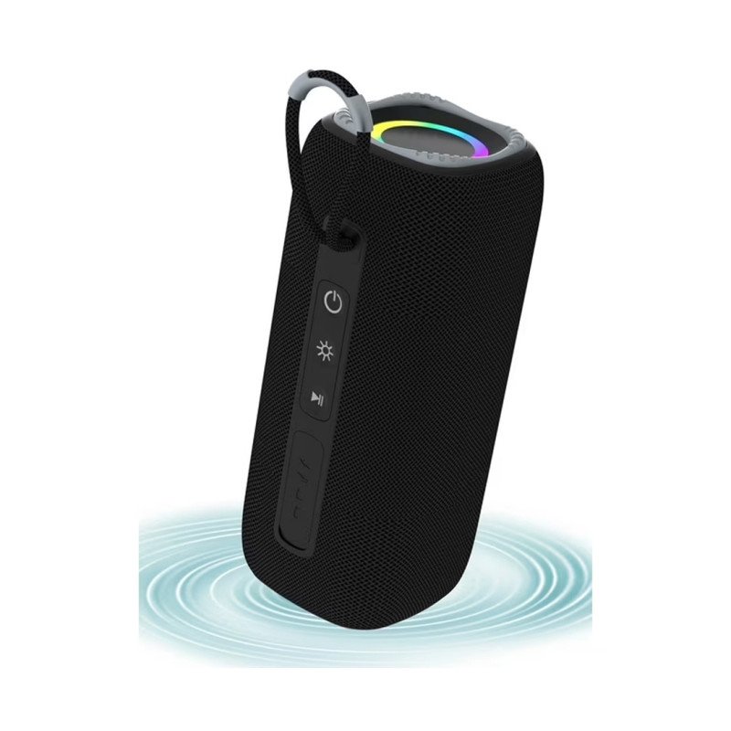 Und das i -Tüpfelchen? Der Lautsprecher hat eingebaute LED-Leuchten, die die Party mit einer farbenfrohen Lichtshow vergrößern.