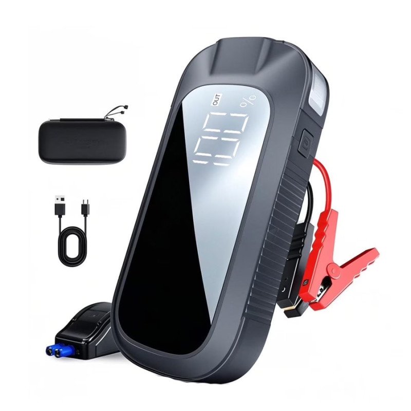 - Beinhaltet: Tragbare Auto-Starthilfe, Überbrückungskabel, USB-C-auf-A-Kabel, Aufbewahrungstasche und Bedienungsanleitung.