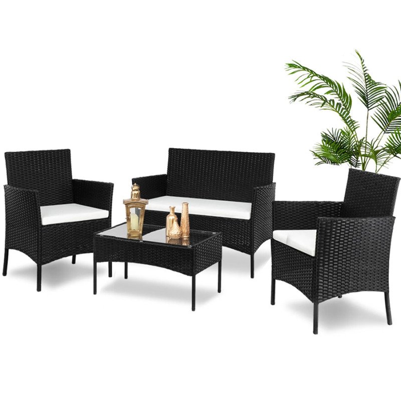 Das Set enthält ein Liebessitz, zwei einzelne Sessel und einen Kaffeetisch mit Glas, den Käufer sagen, “komfortabel und stilvoll”. Es besteht aus Polyethylen -Rattan und hat das natürliche Aussehen von Rattan, aber mit mehr Haltbarkeit. Jedes Stück ist leicht, aber schwer genug, um es durch die Jahreszeiten zu schaffen, da sie wasserdicht und UV-resistent sind. Sie haben auch robuste, pulverbeschichtete Stahlrahmen.