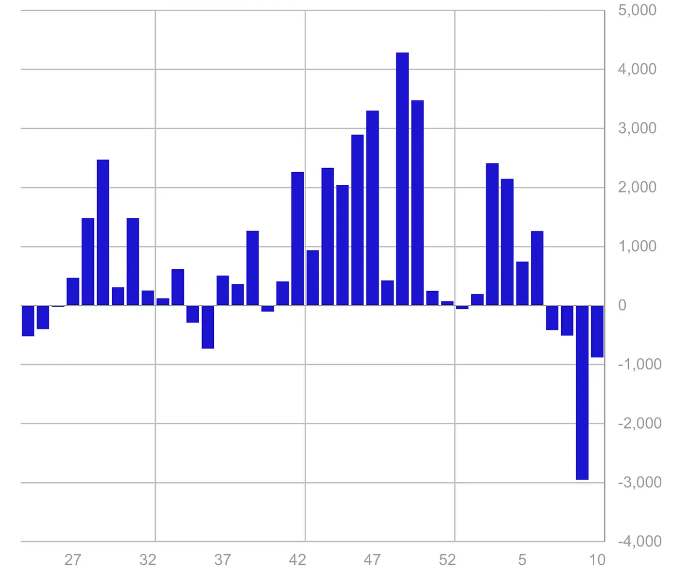 Dies führt zu Abflüssen auf 4,75 Milliarden US-Dollar in den letzten vier Wochen, wodurch die Zuflüsse von Jahreszeiten auf 2,6 Milliarden US-Dollar reduziert werden.