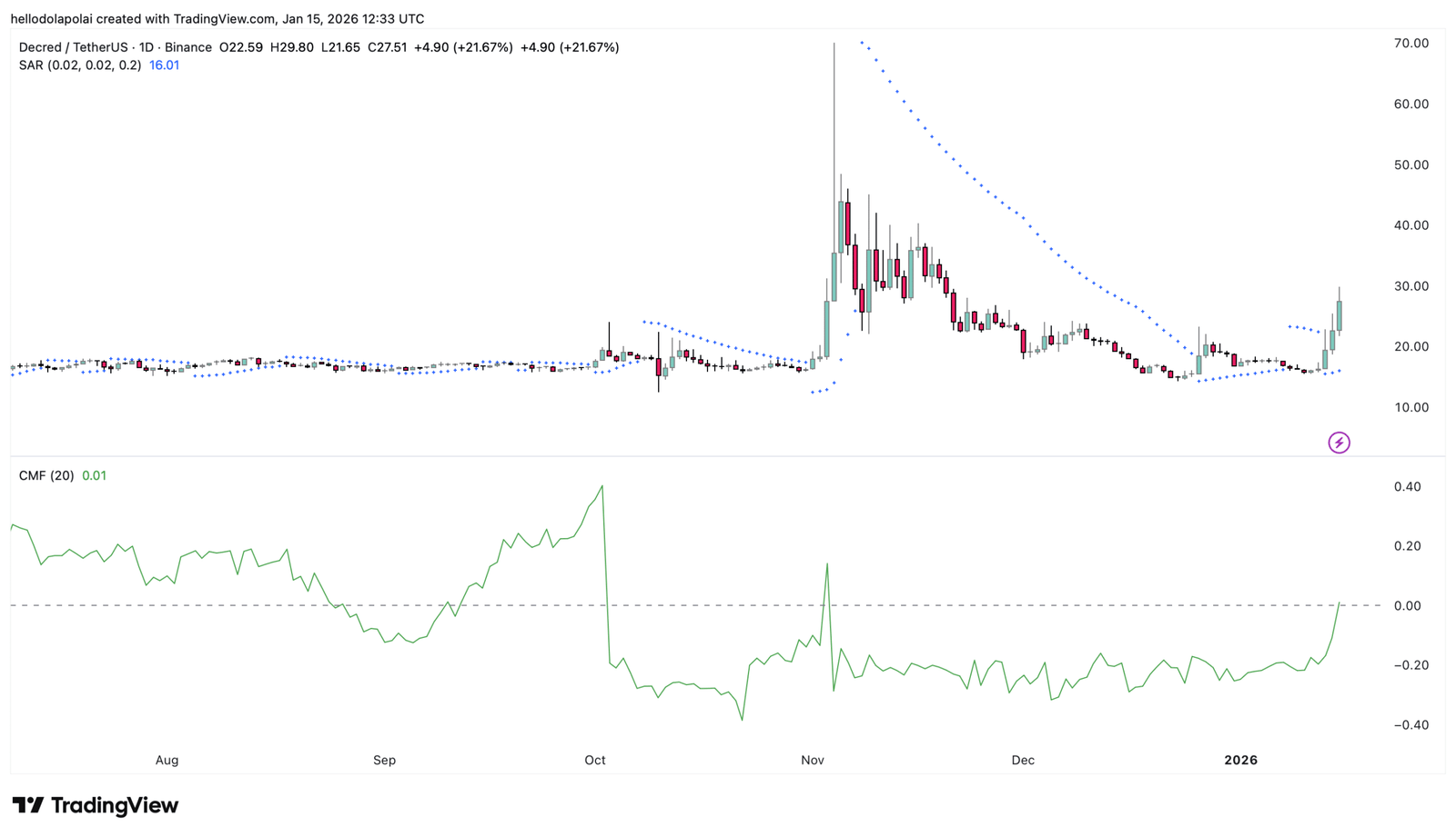 DCR verzeichnete allein in den letzten 24 Stunden Zuwächse von etwa 23 %, was zum Zeitpunkt des Verfassens dieses Artikels die stärkste Leistung auf dem gesamten Markt darstellt.