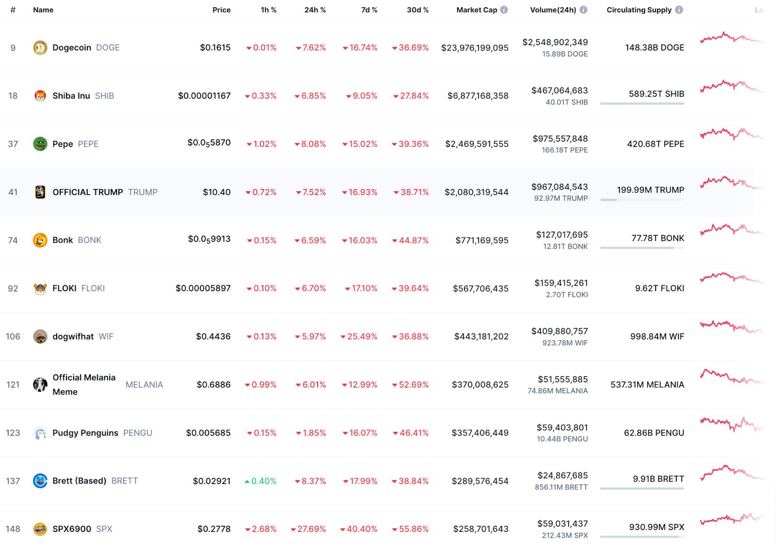 DogEcoins Rückgänge heute sind Teil eines breiteren bärischen Gefühls im Memecoin -Sektor.
