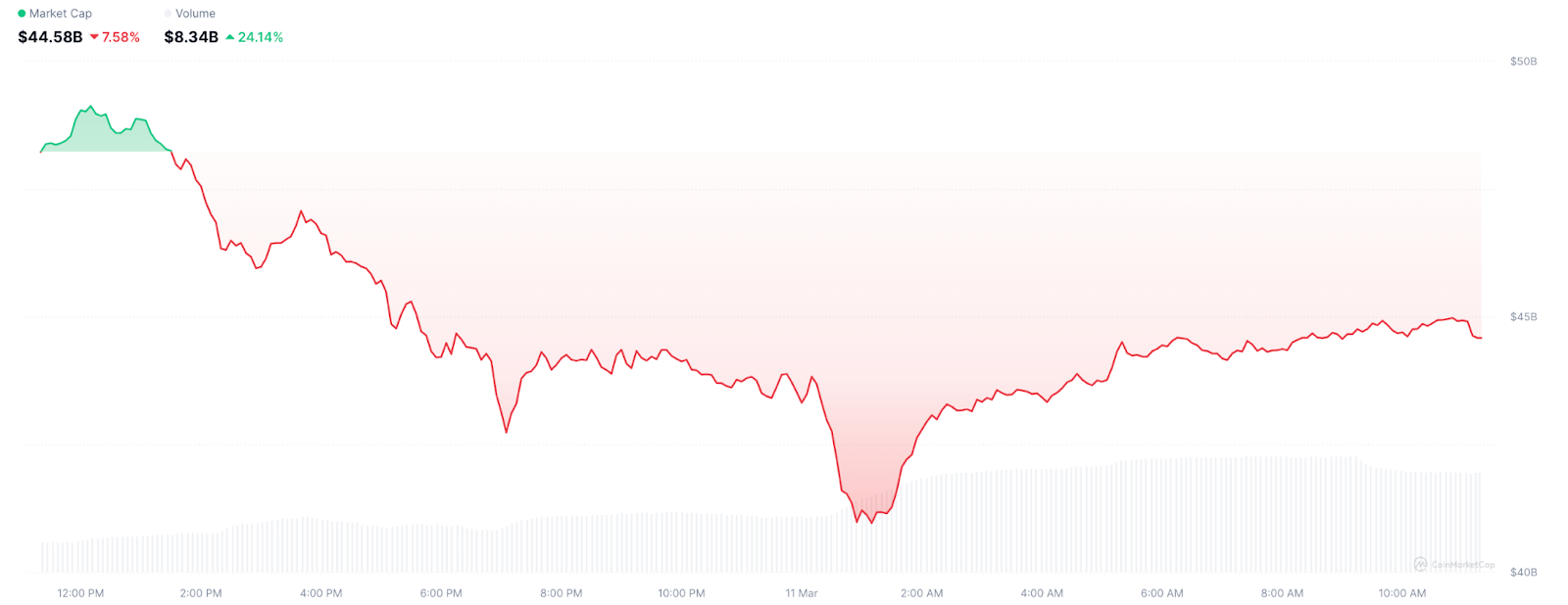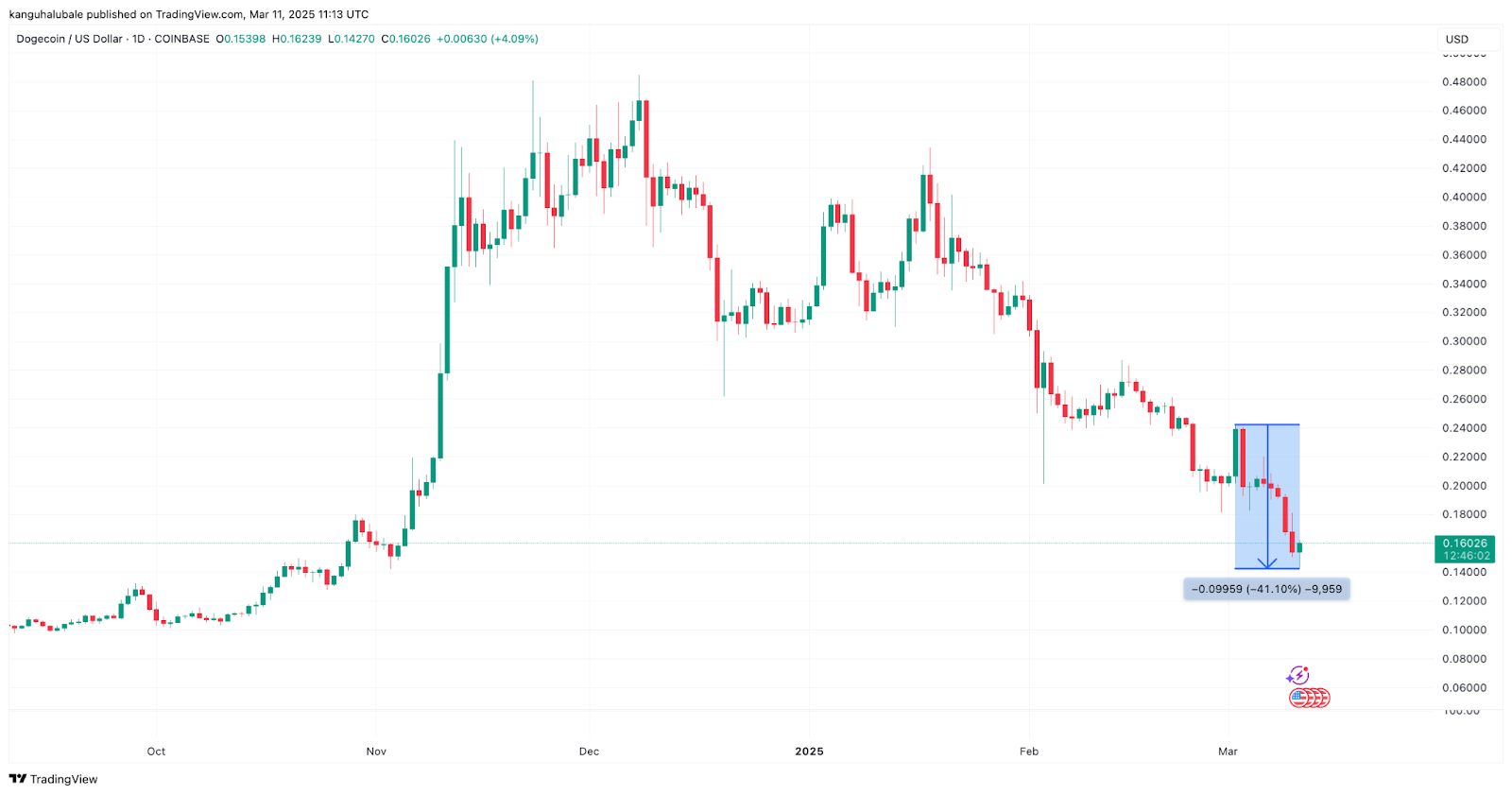 Der Doge -Preis ist am 11. März um 8% gesunken, und die Ablehnung einer großen Widerstandszone zeigt kurzfristig auf eine tiefere Korrektur.