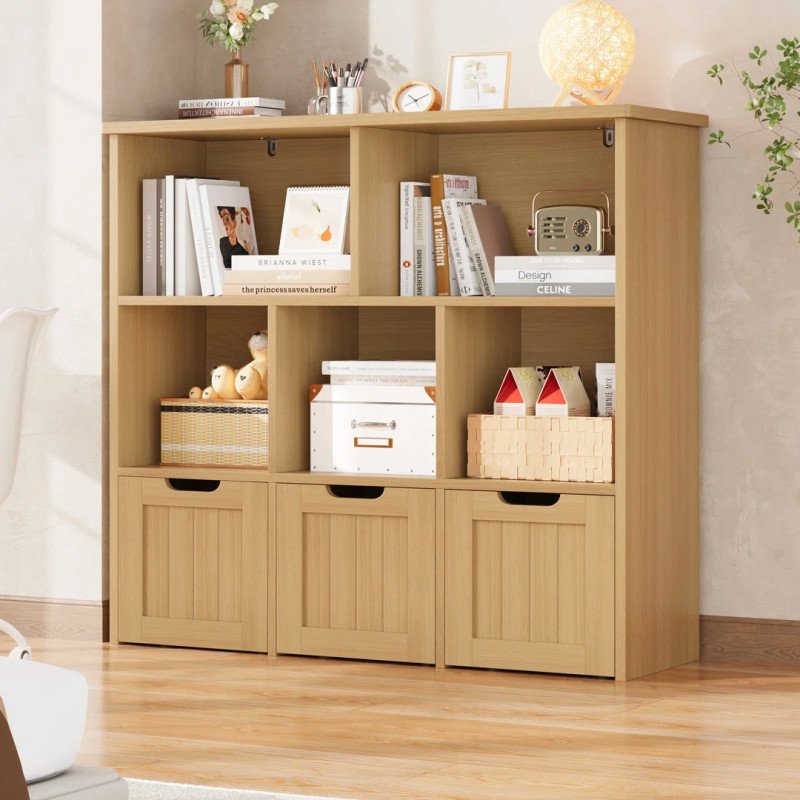 Dieser Organizer ist aus Holzwerkstoff gefertigt und hat ein klares Erscheinungsbild, das gut zu den meisten Einrichtungsgegenständen passt. Für zusätzliche Stabilität kann er an der Wand verankert werden. Er ist 39,4 Zoll breit, 35,2 Zoll hoch und 13 Zoll tief, wobei jede Aufbewahrungsbox etwa 11 x 12 Zoll misst. Durch die niedrige, breite Form ist es für Kinder leicht zugänglich und gleichzeitig groß genug für die Nutzung durch Erwachsene. Es bietet sichtbare und erreichbare Orte, an denen Kinder beim Aufräumen helfen können, um gute Gewohnheiten zu fördern. Es ist in mehreren Farben erhältlich, aber die Farbe Natur hat das schnellste Versanddatum.