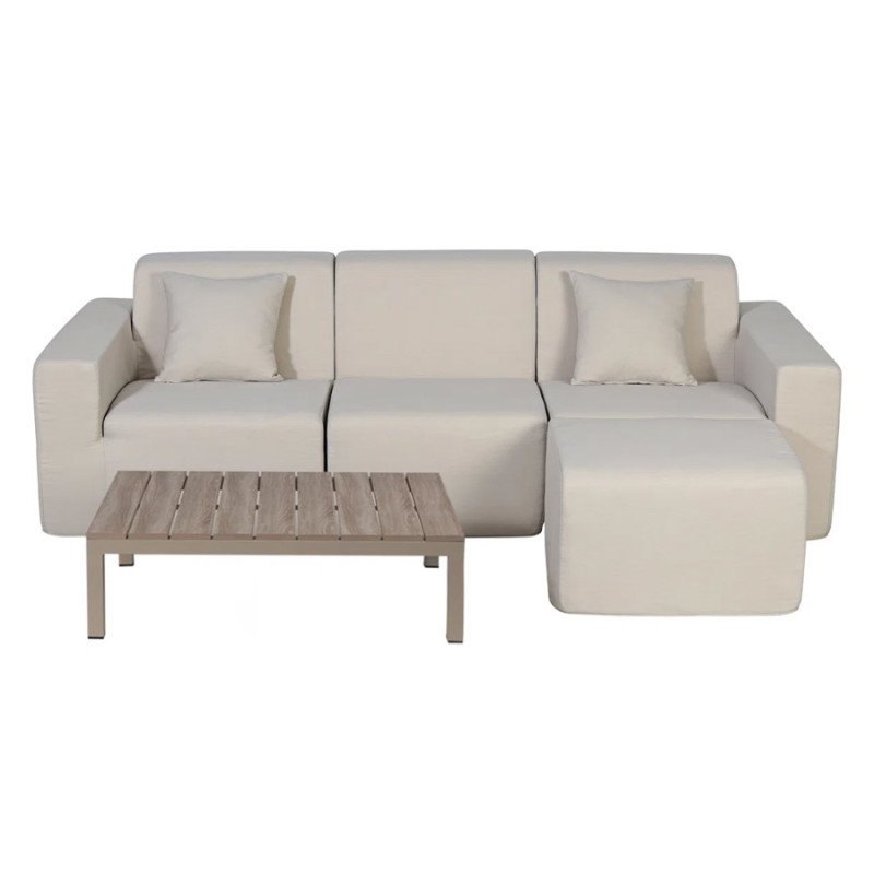 Der modulare Charakter dieses Abschnitts könnte sein größtes Verkaufsargument sein. Zunächst einmal ist die große Ottomane vollständig beweglich. Sie können es an einer beliebigen Stelle am Sofa platzieren, um eine Chaiselongue senkrecht zum Sofa zu schaffen. Zusätzlich ist im Set ein quadratischer Couchtisch enthalten. Der Tisch hat eine Tischplatte mit Holzmaserung, die wasserdicht und kratzfest ist. Es ist jedoch auch mit einem gepolsterten Oberkissen ausgestattet, sodass Sie noch mehr Platz als Fußstütze nutzen können. Dies ist ein wirklich vielseitiges Wohnzimmerset, das man nicht außer Acht lassen sollte.
