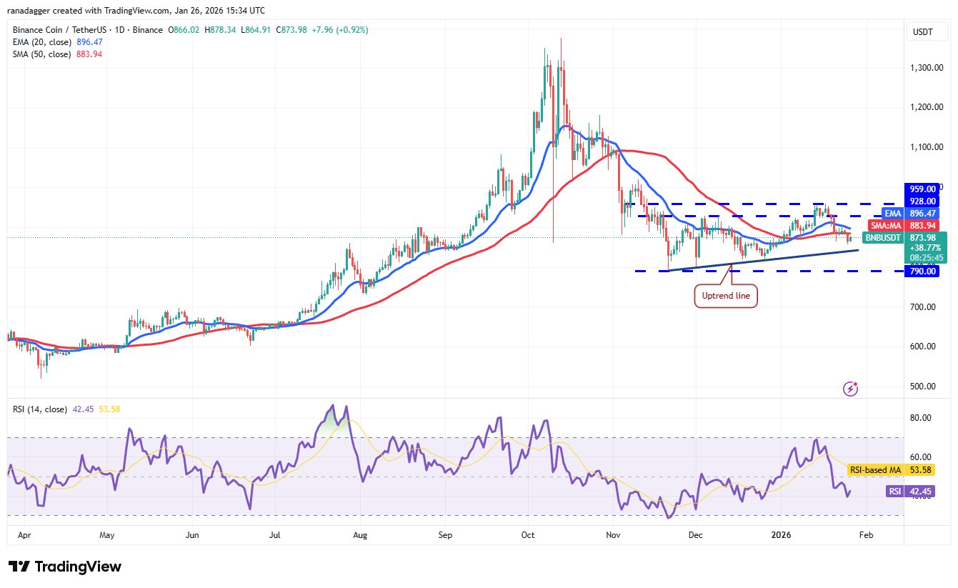 BNB (BNB) schloss am Sonntag unter dem 50-Tage-SMA (883 USD), was darauf hindeutet, dass die Bullen ihren Halt verlieren.