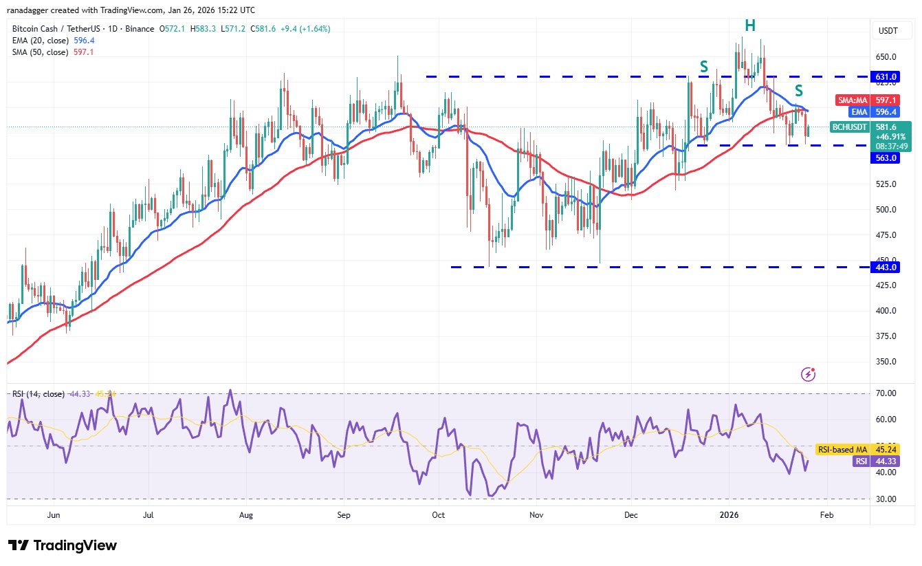 Bitcoin-Bargeld (BCH) fiel am Sonntag gegenüber dem 20-Tages-EMA (596 US-Dollar) stark ab, aber ein kleiner positiver Punkt ist, dass die Bullen das Niveau von 563 US-Dollar hielten.