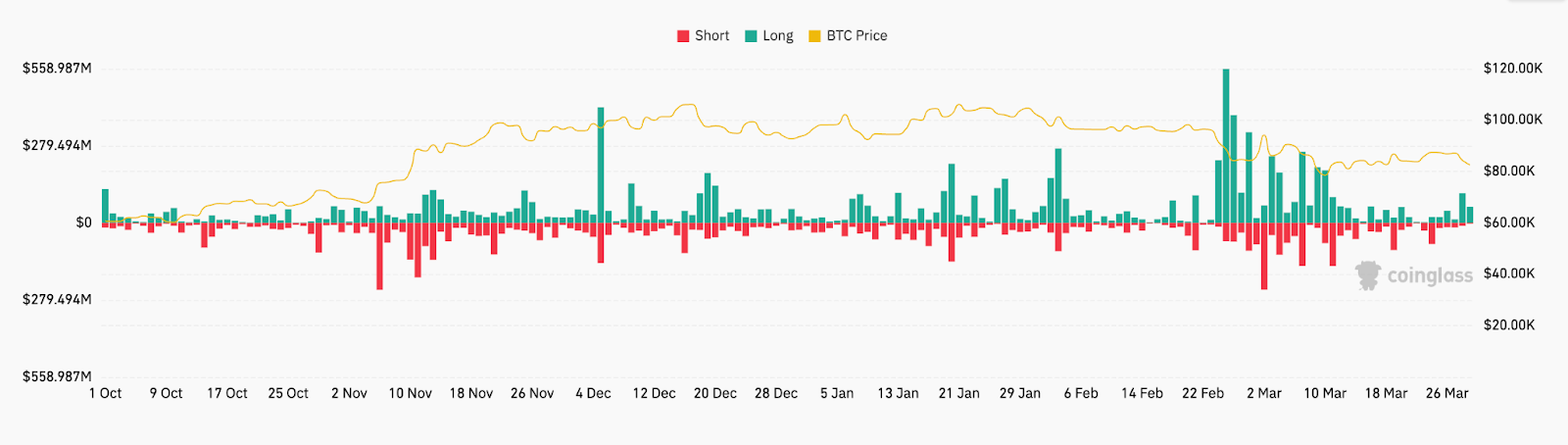 Bitcoin löschte zwischen dem 28. März und dem 29. März mehr als 165 Millionen US -Dollar in langen Positionen.
