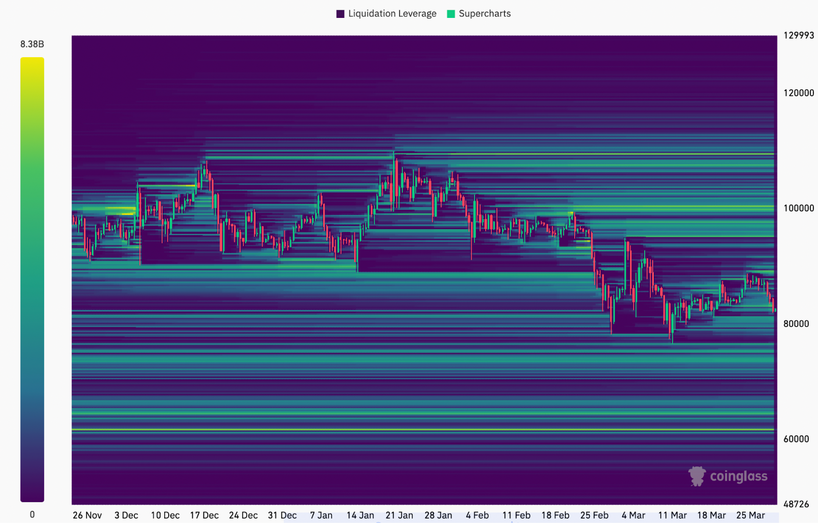 BTC/USDT Liquidation Heatmap (Screenshot). Quelle: Coinglass