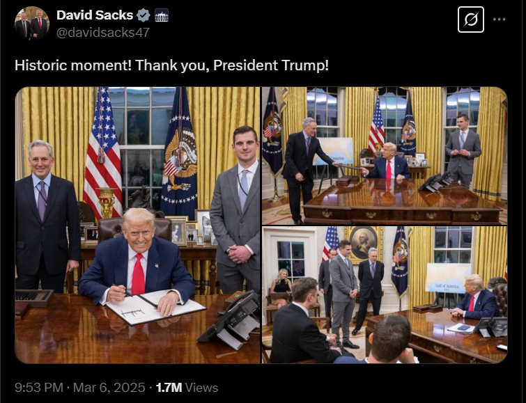 Trumps Kommentar von Executive Order und Sacks hat keinen kurzfristigen Schub für Bitcoin- und KryptopreiseDas könnte sich jedoch ändern, da die Märkte die Bedeutung der neuesten US -amerikanischen politischen Entwicklungen vollständig analysieren.