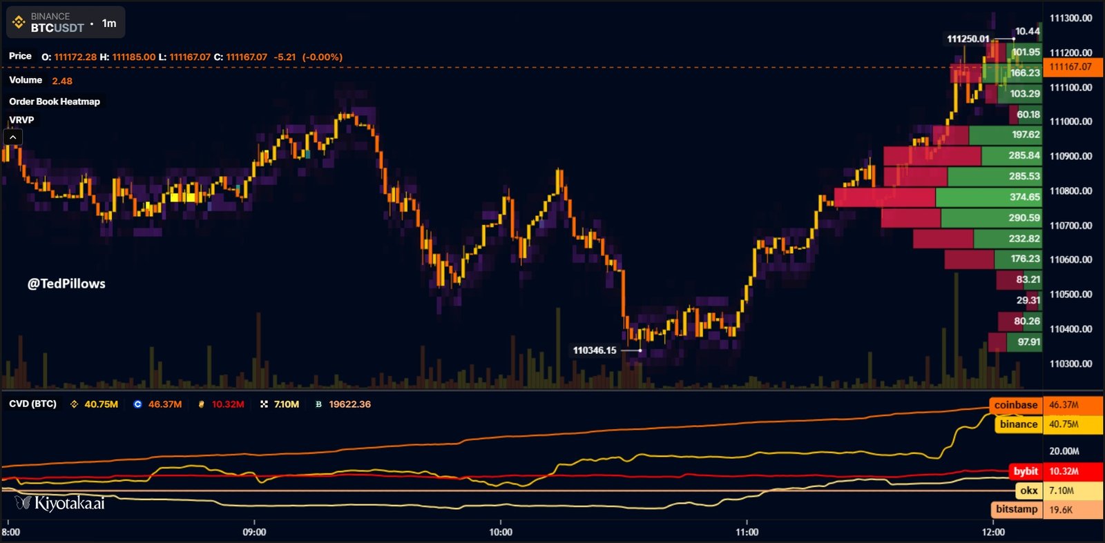 „Binance und Coinbase bieten jetzt auf $BTC“, sagte der Krypto-Investor und Unternehmer Ted Pillows bestätigt auf X.
