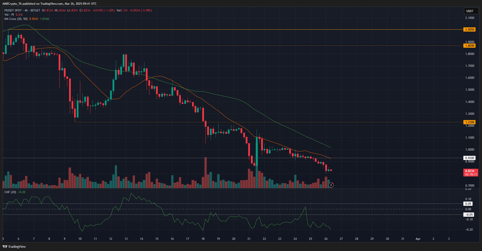 Seit der starken Rallye am 12. März, bei der der Token an einem einzigen Tag 26,28% erhöhte, PI -Netzwerk [PI] war in einem schweren Abwärtstrend.