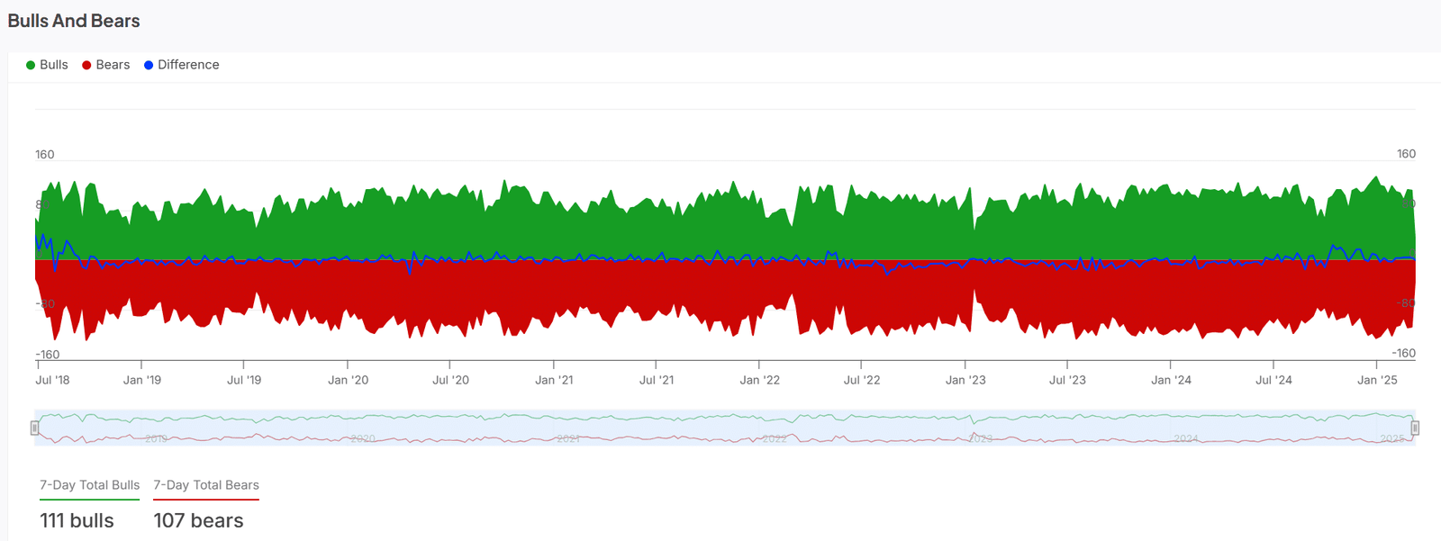 Zum Zeitpunkt des Schreibens schien es ein nahezu ausgeglichenes Gleichgewicht zwischen Bullen und Bären mit 111 Bullen und 107 Bären zu geben. Trotz der Kämpfe des Marktes hielten die Bullen einen leichten Vorteil. Die Bären waren jedoch noch aktiv und das Marktgefühl war auch vorsichtig.