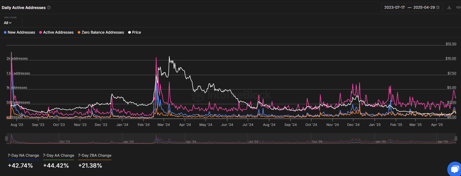 Tatsächlich stiegen die großen Transaktionsvolumen in den letzten 24 Stunden um 42%, während aktive Adressen um 43% gestiegen sind – ein bullisches Signal.