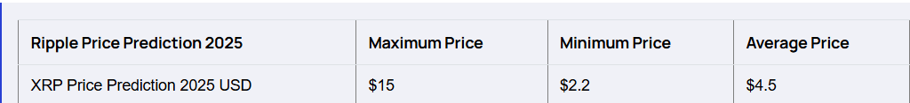 Entsprechend Flitpays XRP -VorhersageXRP kann bis Ende 2025 15 US-Dollar erreichen. Die Plattform sagt auch voraus, dass das Token im Worst-Case-Szenario auf 2 US-Dollar abstürzen kann.