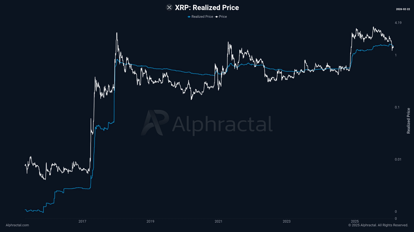 Zum Zeitpunkt der Drucklegung versuchte XRP, seine Position über seinem realisierten Preis wiederzugewinnen. Vereinfacht ausgedrückt ist dies der durchschnittliche Preis, den aktuelle Inhaber für ihre Münzen bezahlt haben.