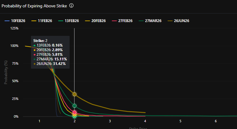 - Allerdings bleiben Optionshändler äußerst vorsichtig und glauben, dass die Chance, dass XRP 2 US-Dollar zurückerhält, weniger als 6 % beträgt.