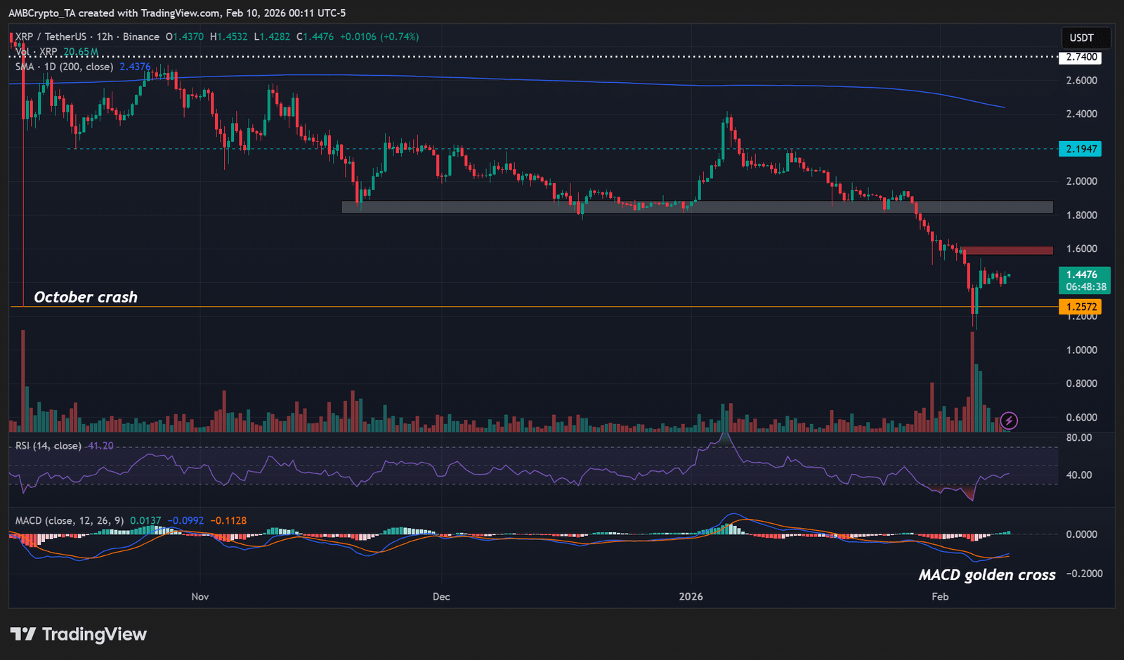 Wie der breitere Kryptomarkt wird auch der Erholungsaufschwung von XRP nach dem Absturz vom 5. Februar mit einiger Vorsicht aufgenommen. Der Altcoin fiel auf ein Jahrestief von 1,1 US-Dollar, erholte sich aber bald um 30 % auf 1,4 US-Dollar.