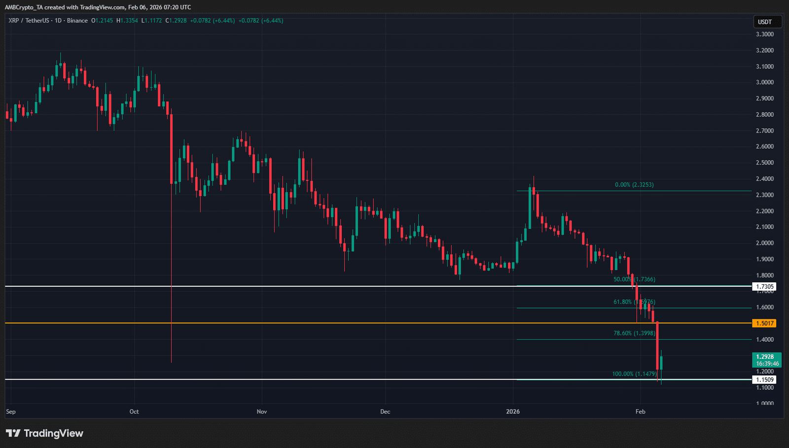 Gelingt es jedoch nicht, die 1,15-Dollar-Marke bei einem Tagesschluss zu halten, würde das das Marktvertrauen schwächen und XRP einer tieferen Bewegung in Richtung der psychologischen 1,00-Dollar-Marke aussetzen.