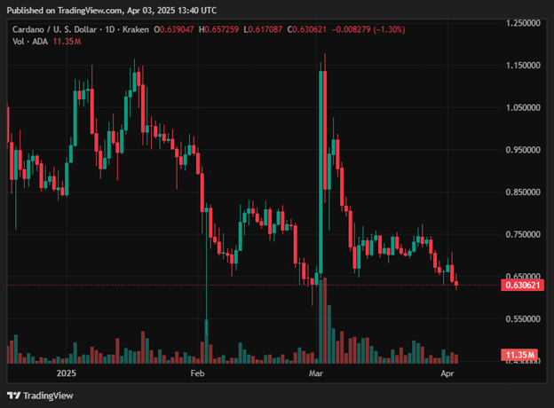 Cardano wird nach 4% in den letzten 24 Stunden bei 0,63 USD gehandelt. Trotz des Dips erzielte Cardano einen bedeutenden Meilenstein mit Der Start seiner Zukunft auf Coinbasewas ein neues Interesse durch Institutionen und verbesserte Marktliquidität ausgelöst hat.