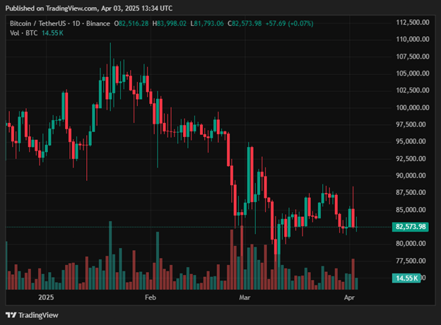 Bitcoin hält bei 82.500 US -Dollar, wenn der Markt auf reagiert Präsident Donald Trumps Nachrichten über neue Zölle. In der Zwischenzeit positiv, Zwei neue ETFs aus GraustufeninvestitionenDer Bitcoin Covered Call ETF (BTCC) und das Bitcoin Premium Income ETF (BPI) konzentrieren sich auf Bitcoin, um Anlegern Einkommensinvestitionsmöglichkeiten zu bieten.