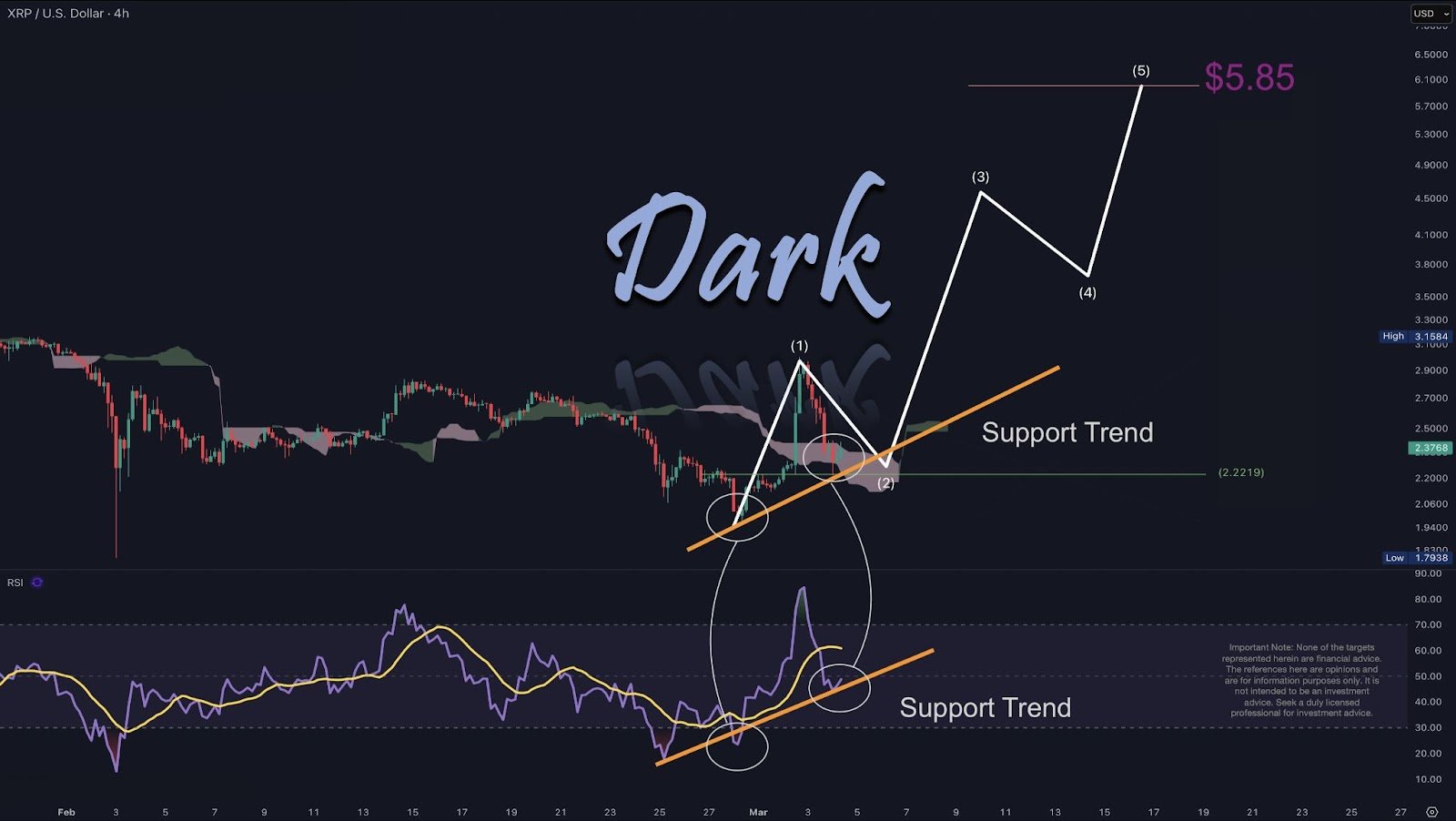 XRP/USD 4-Stunden-Diagramm. Quelle: Dark Defender