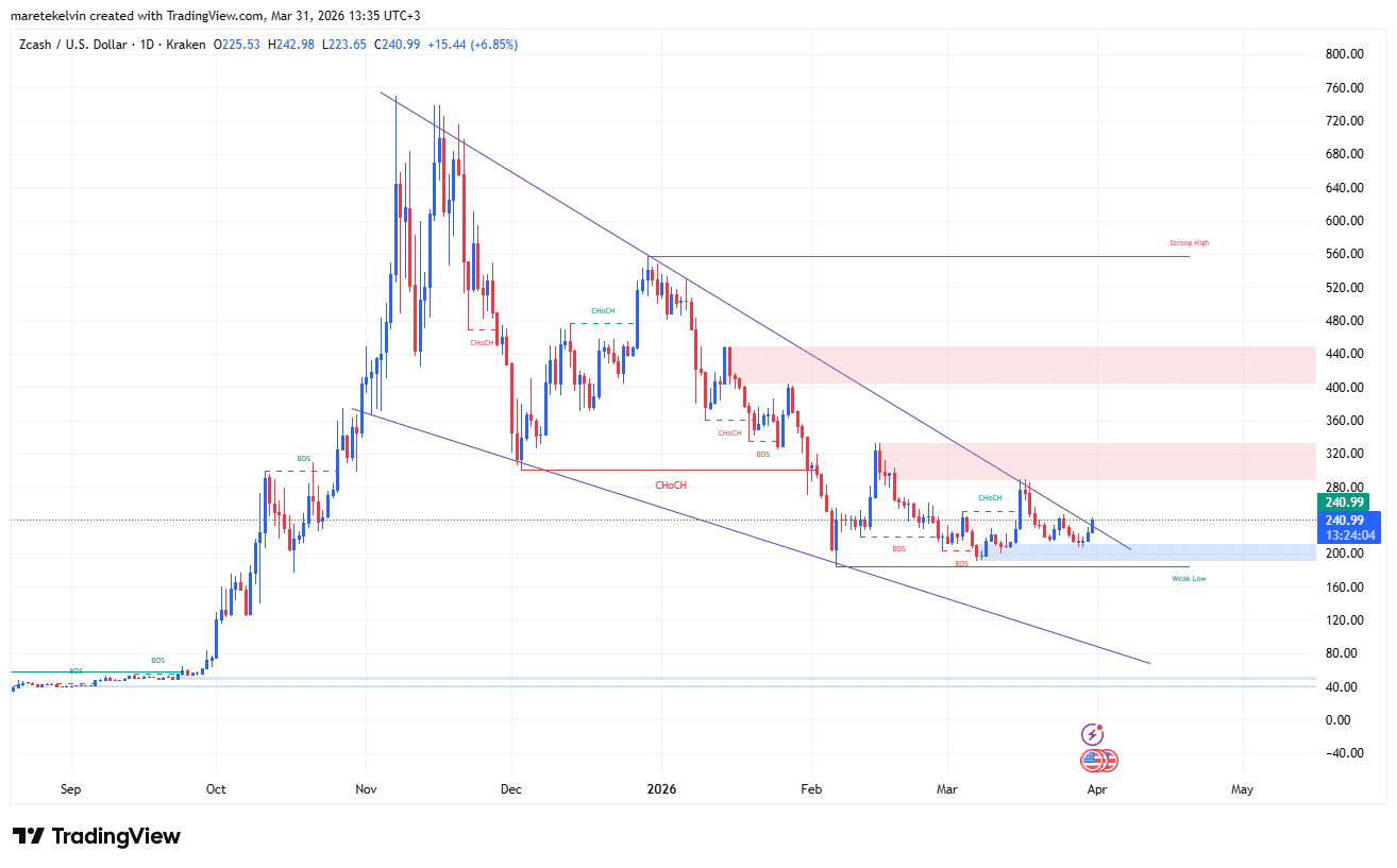 Zcash (ZEC) schien sich zum Zeitpunkt des Verfassens dieses Artikels einem wichtigen technischen Moment in den Charts zu nähern. Nach drei Tagen starker Aufwärtsbewegung drückte der Preis des Tokens gegen einen Widerstandskeil.