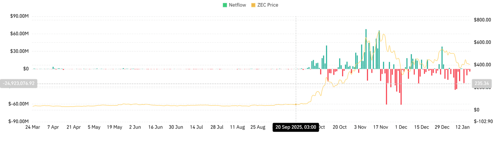Darüber hinaus spiegelten die Börsenaktivitäten die steigende Walnachfrage auf dem Markt weiter wider. Laut CoinGlass war der Spot-Netflow von Zcash an fünf aufeinanderfolgenden Tagen negativ, was auf verstärkte Dip-Käufe hindeutet.
