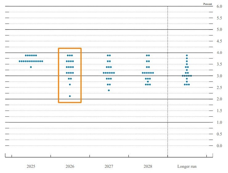 Das Punktdiagramm vom Dezember 2025, das die Zinsprojektion jedes politischen Entscheidungsträgers zeigt, zeigt Es handelt sich um eine bemerkenswerte Spaltung, bei der gleich viele von null, einer oder zwei Zinssenkungen ausgehen, was zu Beginn des Jahres 2026 zu erheblicher Unsicherheit für die Märkte führt.