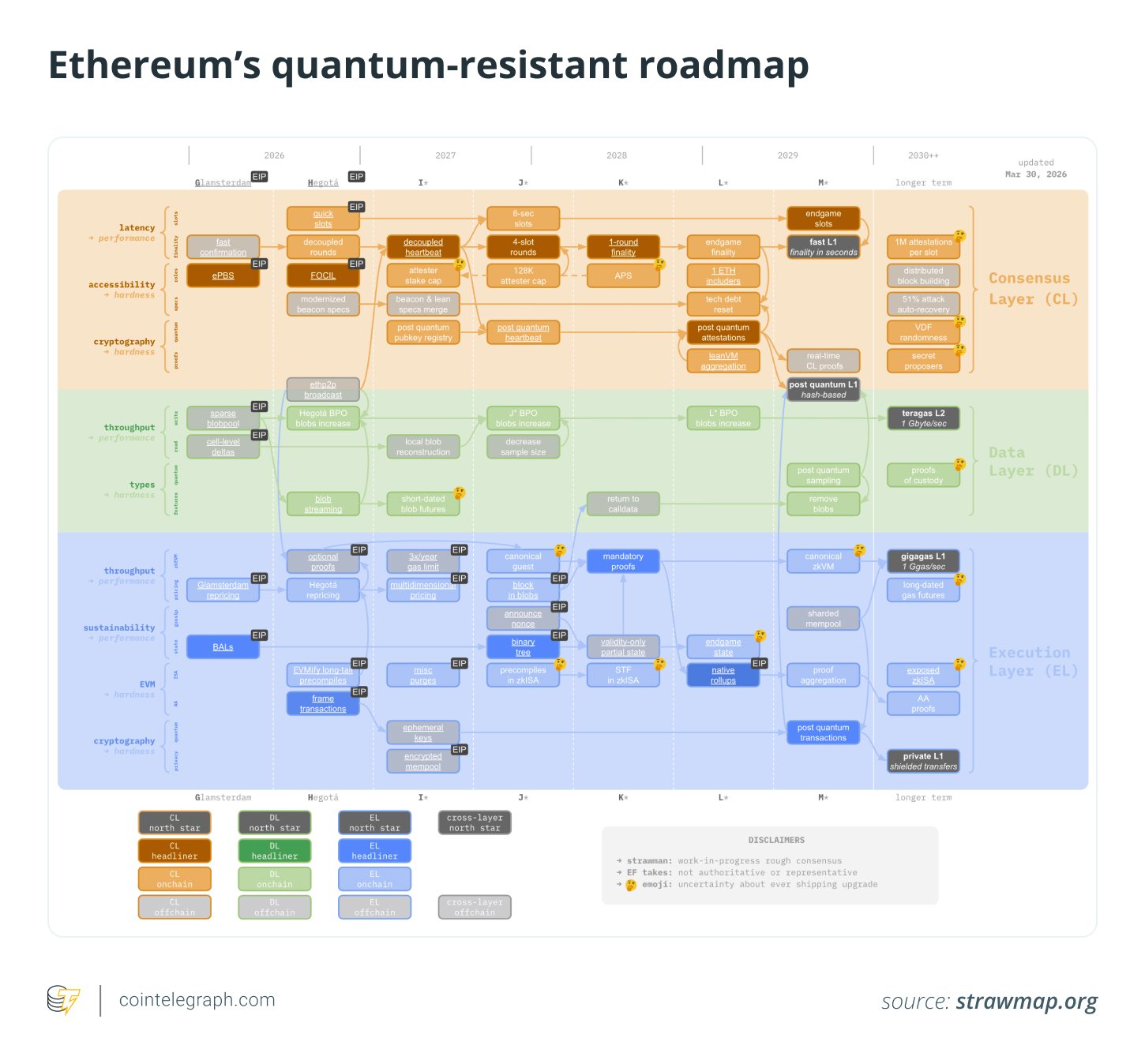 Die Ethereum-Entwickler haben die Post-Quantum-Sicherheit als langfristige strategische Priorität positioniert, wobei sich die Zeitpläne bis zum Ende des Jahrzehnts erstrecken.